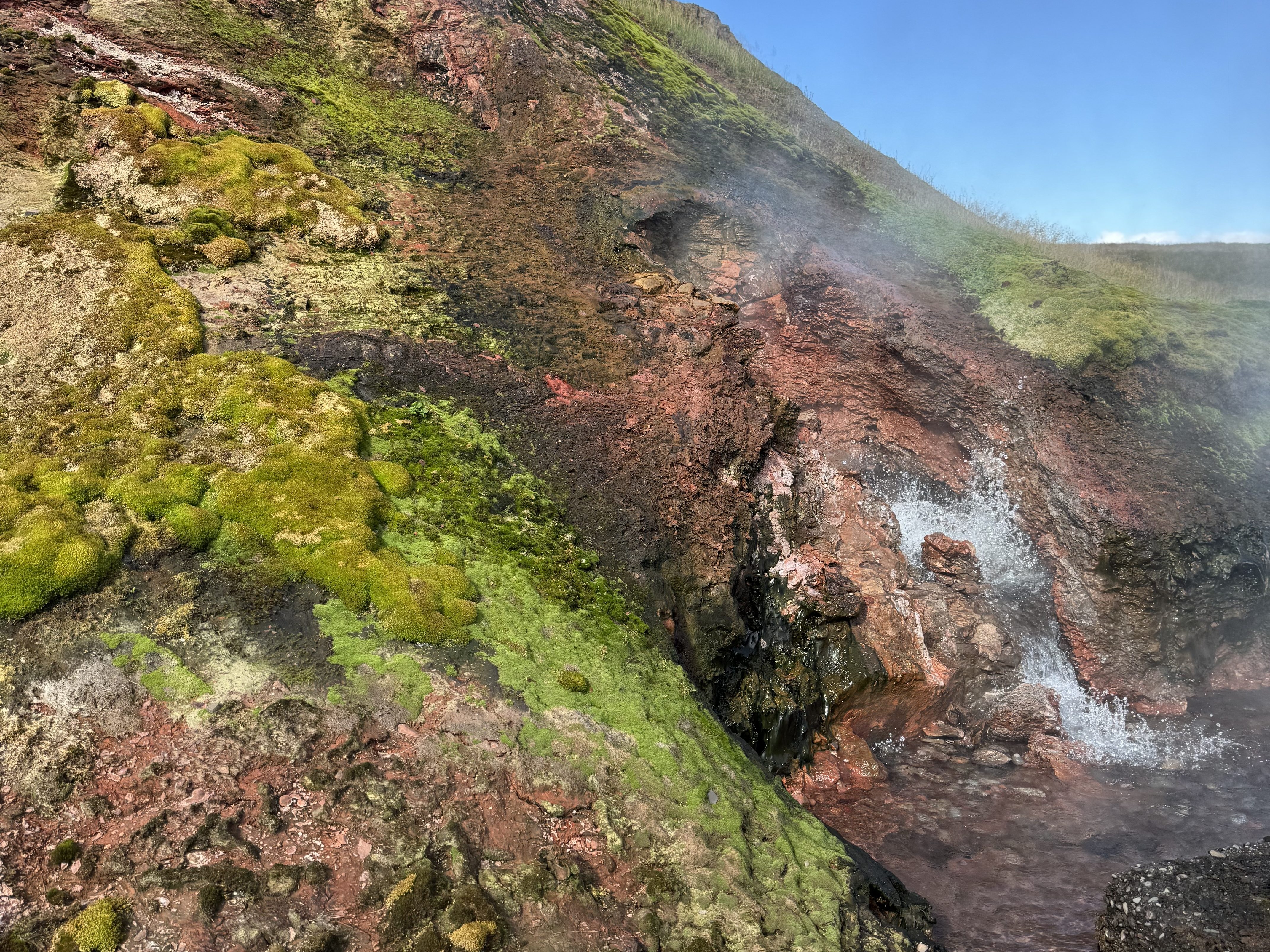 At Deildartunguhver, we witnessed Europe’s most powerful hot spring, gushing 180 liters (50 gallons) per second at 97°C (200°F). This single spring provides central heating for communities within 64 km, including Borgarnes and Akranes. The sight of boiling water surging out of an algae-covered rock face was both surreal and humbling.