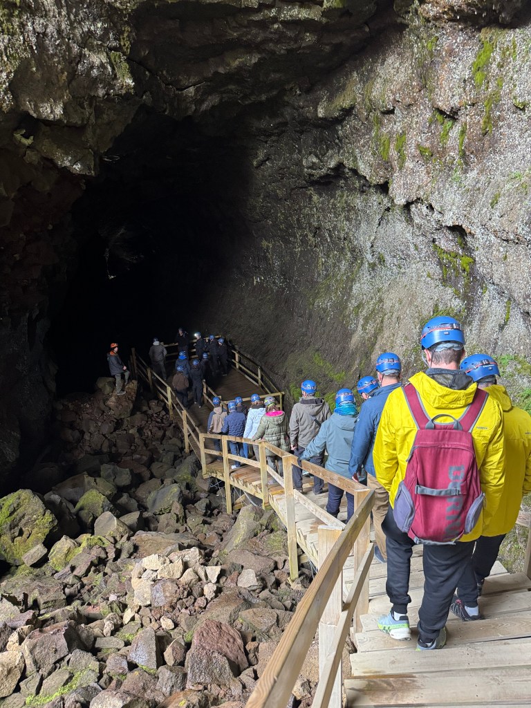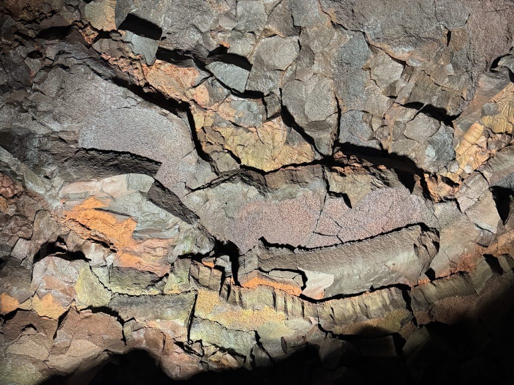 Our last stop was Viðgelmir, Iceland’s largest lava tube and among the largest in the world. It stretches 1,585 meters (5,200 feet) and formed over a thousand years ago during the Hallmundarhraun eruption. Inside, we marveled at colorful lava formations, crystals, and striking stalactites and stalagmites.