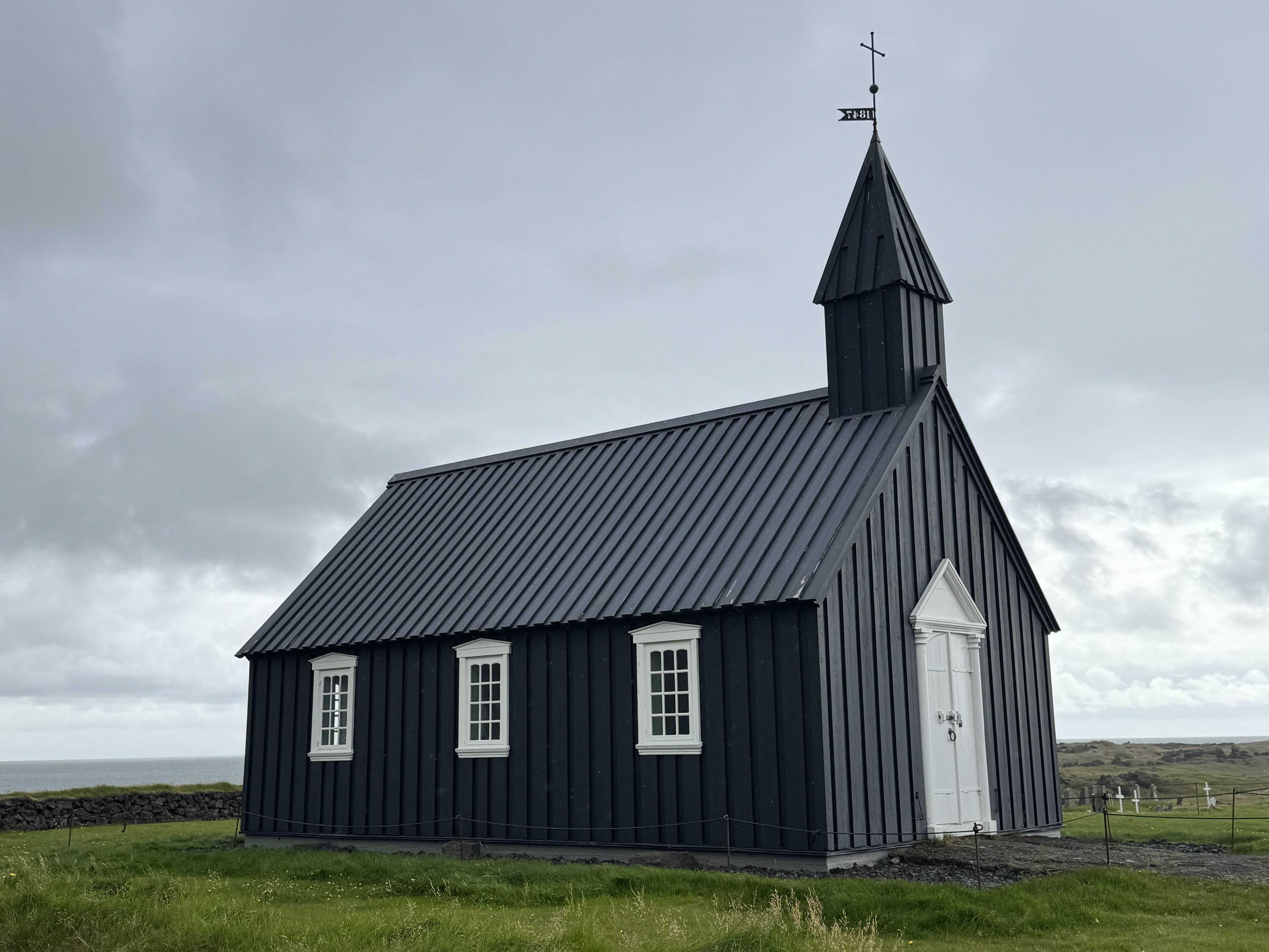 Next was Búðakirkja, a small black wooden church first built in the 1700s and reconstructed in 1848 after the original turf version fell into ruin. Its pitch-coated wood, used for weatherproofing, gives it the dramatic black appearance that contrasts beautifully with the surrounding lava fields and mossy landscape. It’s one of the most photographed churches in Iceland.