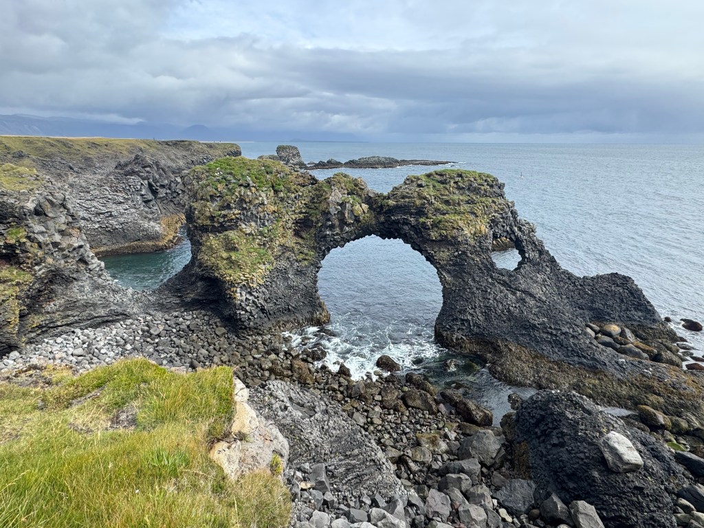A short drive away, the Lóndrangar basalt towers rise dramatically from the sea. These cliffs are remnants of a volcanic crater and are now nesting grounds for seabirds. Puffins had already left for the season, but we saw other seabirds clinging to the rugged rocks.