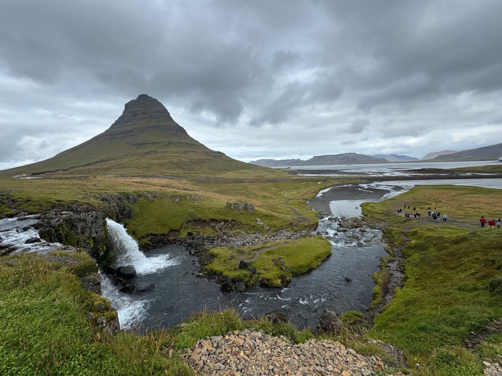 Our final stop was the most photographed mountain in Iceland: Kirkjufell. Rising 463 meters (1,519 feet), its arrowhead shape and nearby Kirkjufellsfoss waterfall make it iconic. It was also featured as “Arrowhead Mountain” in Game of Thrones.